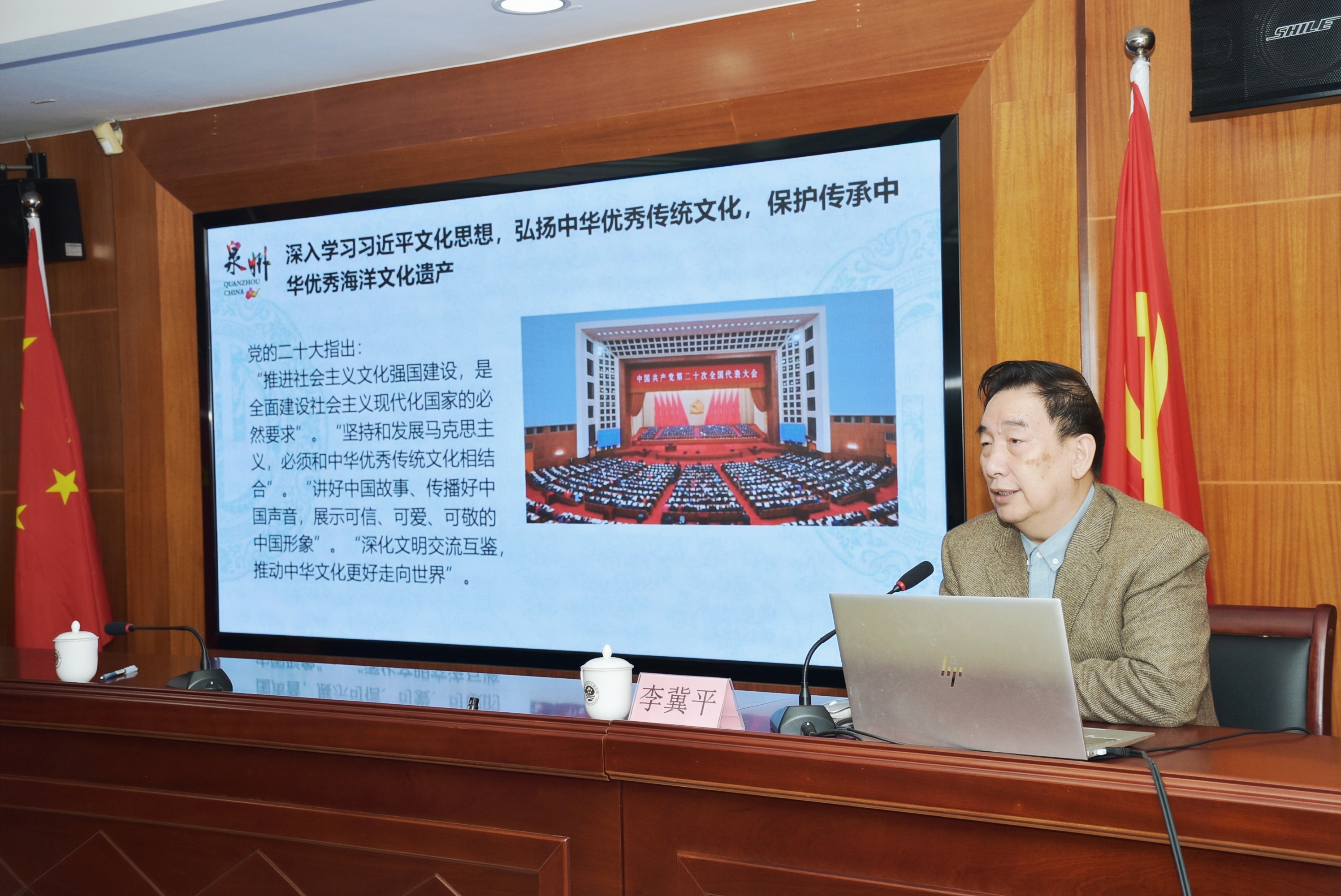 李冀平老师以“深学笃行习近平文化思想,保护传承与弘扬中华海洋文明”为题,深入浅出地阐述了习近平文化思想在海洋文化领域的重大指导意义,结合丰富的文献和生动的案例,展现了国产探花视频 “海上丝绸之路”的辉煌历史,解读国产探花视频 海洋文明的价值和意义,使全局干部职工对海洋文化的保护和传承有了更深刻的认识。